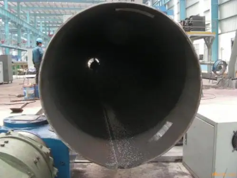The interior longitudinal seam of the pipe is welded from the inside by fixing 4 welding heads while moving pipe and using submerged-arc welding process.