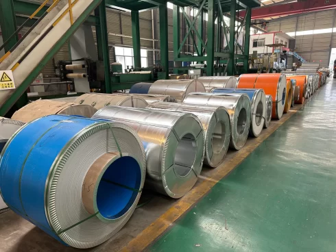 The color-coated Coil is coated with one or more layers of liquid paint by roll coating method after surface pretreatment (degreasing and chemical treatment) on the hot-rolled substrate, galvanized substrate, aluminized zinc substrate, cold-rolled substrate, tinned substrate, and stainless steel substrate. After baking and cooling, formed by light rolling.