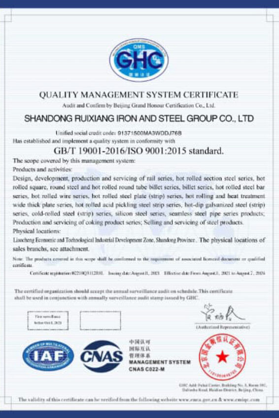 various textile machinery rolls, oil tank rolls). The company stocks more than 10,000 tons of pipes, plates, bars and profilesall year round. It has a stable supply capacity and meets the different needs of the market. In 2020, Ruixiang Iron & Steel Group’s productions sales exceeded 10 million tons, which has already had a certain influence in the steel industry. And the company is committed to providing one-stop steel procurement services for global customers.
